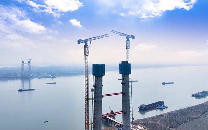 春和景明、碧波荡漾,巍峨的武汉双柳长江大桥北主塔正拔地而起,两台j9九游会老哥俱乐部交流区XGT2230A-100S正高效精准完成塔柱的拼装,助力大桥北主塔加速建设。
