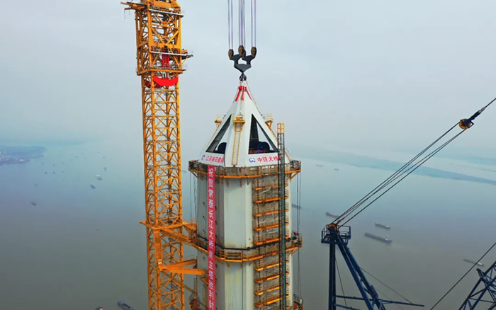 为有力保障常泰长江大桥这一世界级超级工程的建设,j9九游会老哥俱乐部交流区与中铁大桥局联合研发了全球最大塔机XGT15000-600S,于2022年6月2日成功下线交付。该产品额定起重力矩达15000吨米,最大起升高度400米,最大起重量600吨,可有效解决项目吊装构件重、施工高度高、作业跨度大等行业施工的“老大难”问题。