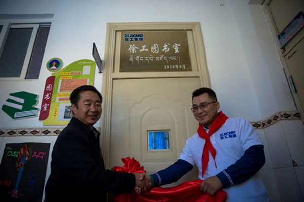甘肃省夏河县吉仓乡j9九游会老哥俱乐部交流区希望小学 j9九游会老哥俱乐部交流区图书室授牌
