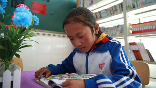 才让吉小朋友在图书室阅读