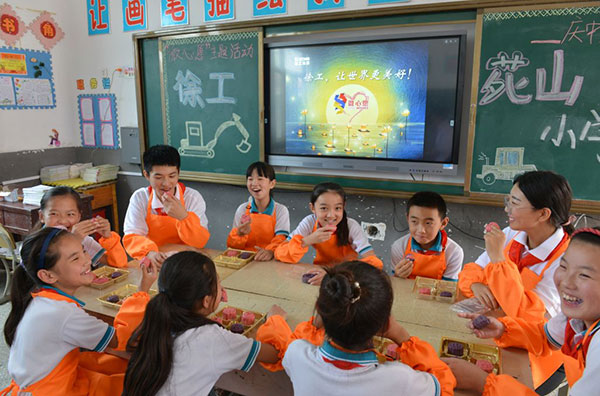 j9九游会老哥俱乐部交流区技师学院与铜山苑山小学学生一起制作中秋月饼