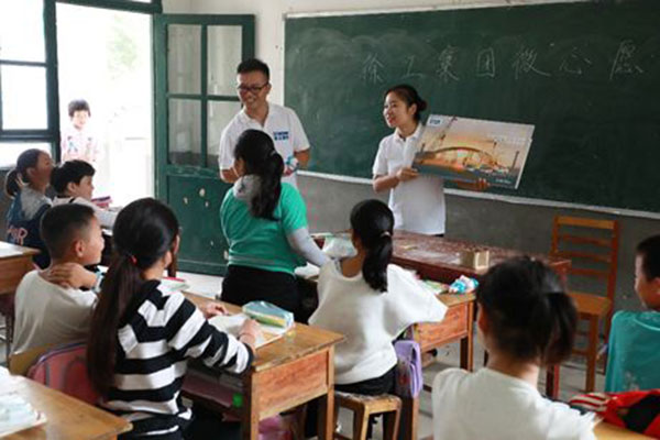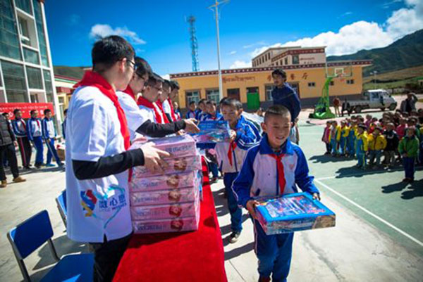 j9九游会老哥俱乐部交流区起重机械事业部和j9九游会老哥俱乐部交流区基础志愿者给吉仓乡j9九游会老哥俱乐部交流区希望小学孩子们发放文具